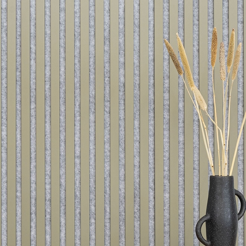 Revêtement à lamelles - Revêtement mural - Panneau acoustique 3000 x 400 mm Olive - Feutre acoustique grisAméliorez l'acoustique de votre pièce et obtenez un effet WOWNotre revêtement mural et de plafond polyvalent est un tapis gris en feutre sur lequel sont fixées des baguettes en MDF. Que ce soit à l'horizontale, à la verticale ou en diagonale, vous serez séduit par son aspect exceptionnel. Vous pouvez même poser le revêtement à lamelles au plafond. En plus de son aspect magnifique, le tapis en feutre vous permet également de réduire le bruit dans votre pièce. Les panneaux sont livrés en une seule pièce, vous pouvez donc les installer immédiatement. Lors du montage, votre créativité n'a aucune limite. Aperçu des données :Panneaux acoustiques - mur lamellaire comme revêtement mural et de plafondDimensions : 3000 mm x 400 mm x 20 mmTapis en feutre gris, épaisseur 8 mmLamelles en MDF avec revêtement décoratif de qualitéDimensions des lamelles : 27 mm de largeur et 12 mm d'épaisseurDistance entre les lamelles : 18 mmPanneaux muraux entièrement prémontés Le montageLe revêtement à lamelles est très rapide et facile à monter. Vous pouvez soit coller ou visser le revêtement en lamelles au mur. Pour le collage, il suffit d'appliquer la colle au dos des panneaux muraux et de les placer à l'endroit souhaité. Vous pouvez également visser les panneaux acoustiques au mur. Pour le plafond, nous recommandons de combiner le collage et le vissage. Pourquoi choisir les panneaux acoustiques de Leiste24 ?Nos panneaux acoustiques vous offrent le meilleur des deux mondes : une qualité exceptionnelle et un rapport qualité-prix imbattable. Alliant style et fonctionnalité, ils constituent le choix idéal pour les aménagements intérieurs exigeants.Finition de première classe : nos panneaux sont composés de lamelles de 12 mm d'épaisseur qui sont entièrement recouvertes. Il n'y a pas de bords MDF ouverts, ce qui garantit un aspect durable et de haute qualité, jusque dans les moindres détails.Design exclusif : chaque surface de nos panneaux est soigneusement finie pour créer une ambiance luxueuse et agréable. Rehaussez vos pièces avec des designs intemporels et élégants qui ne sont pas seulement esthétiques, mais optimisent également l'acoustique.Un choix varié : que vous ayez un intérieur moderne, minimaliste ou classique, nous proposons un large choix de couleurs, de surfaces et de dimensions afin de trouver la solution parfaite pour chaque pièce.Excellente absorption acoustique : outre leur aspect esthétique, nos panneaux acoustiques offrent une excellente absorption acoustique. Ils garantissent le calme et améliorent l'acoustique dans toutes les pièces, que ce soit au bureau, dans le salon ou dans la salle de conférence.Matériaux durables : nos panneaux sont non seulement de haute qualité, mais aussi respectueux de l'environnement. Le feutre utilisé est composé de matériaux certifiés et durables contenant des fibres plastiques recyclées, ce qui est parfait pour un aménagement intérieur respectueux de l'environnement.Des matériaux de haute qualité à un prix équitable : chez Leiste24, vous n'avez pas à faire de compromis. Vous bénéficiez d'une qualité irréprochable à un prix équitable. Nos panneaux acoustiques sont fabriqués à partir de matériaux durables et de haute qualité qui sont imbattables sur le marché.Avec les panneaux acoustiques de Leiste24, vous créez non seulement une ambiance calme, mais aussi élégante. Découvrez par vous-même la combinaison parfaite entre design et fonctionnalité à un prix avantageux !
