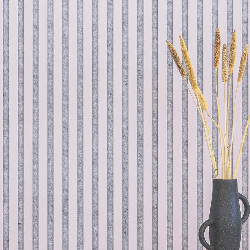 Revêtement à lamelles - Revêtement mural - Panneau acoustique 3000 x 400 mm Blanc - Feutre acoustique grisAméliorez l'acoustique de votre pièce et obtenez un effet WOWNotre revêtement mural et de plafond polyvalent est un tapis gris en feutre sur lequel sont fixées des baguettes en MDF. Que ce soit à l'horizontale, à la verticale ou en diagonale, vous serez séduit par son aspect exceptionnel. Vous pouvez même poser le revêtement à lamelles au plafond. En plus de son aspect magnifique, le tapis en feutre vous permet également de réduire le bruit dans votre pièce. Les panneaux sont livrés en une seule pièce, vous pouvez donc les installer immédiatement. Lors du montage, votre créativité n'a aucune limite. Aperçu des données :Panneaux acoustiques - mur lamellaire comme revêtement mural et de plafondDimensions : 3000 mm x 400 mm x 20 mmTapis en feutre gris, épaisseur 8 mmLamelles en MDF avec revêtement décoratif de qualitéDimensions des lamelles : 27 mm de largeur et 12 mm d'épaisseurDistance entre les lamelles : 18 mmPanneaux muraux entièrement prémontés Le montageLe revêtement à lamelles est très rapide et facile à monter. Vous pouvez soit coller ou visser le revêtement en lamelles au mur. Pour le collage, il suffit d'appliquer la colle au dos des panneaux muraux et de les placer à l'endroit souhaité. Vous pouvez également visser les panneaux acoustiques au mur. Pour le plafond, nous recommandons de combiner le collage et le vissage. Pourquoi choisir les panneaux acoustiques de Leiste24 ?Nos panneaux acoustiques vous offrent le meilleur des deux mondes : une qualité exceptionnelle et un rapport qualité-prix imbattable. Alliant style et fonctionnalité, ils constituent le choix idéal pour les aménagements intérieurs exigeants.Finition de première classe : nos panneaux sont composés de lamelles de 12 mm d'épaisseur qui sont entièrement recouvertes. Il n'y a pas de bords MDF ouverts, ce qui garantit un aspect durable et de haute qualité, jusque dans les moindres détails.Design exclusif : chaque surface de nos panneaux est soigneusement finie pour créer une ambiance luxueuse et agréable. Rehaussez vos pièces avec des designs intemporels et élégants qui ne sont pas seulement esthétiques, mais optimisent également l'acoustique.Un choix varié : que vous ayez un intérieur moderne, minimaliste ou classique, nous proposons un large choix de couleurs, de surfaces et de dimensions afin de trouver la solution parfaite pour chaque pièce.Excellente absorption acoustique : outre leur aspect esthétique, nos panneaux acoustiques offrent une excellente absorption acoustique. Ils garantissent le calme et améliorent l'acoustique dans toutes les pièces, que ce soit au bureau, dans le salon ou dans la salle de conférence.Matériaux durables : nos panneaux sont non seulement de haute qualité, mais aussi respectueux de l'environnement. Le feutre utilisé est composé de matériaux certifiés et durables contenant des fibres plastiques recyclées, ce qui est parfait pour un aménagement intérieur respectueux de l'environnement.Des matériaux de haute qualité à un prix équitable : chez Leiste24, vous n'avez pas à faire de compromis. Vous bénéficiez d'une qualité irréprochable à un prix équitable. Nos panneaux acoustiques sont fabriqués à partir de matériaux durables et de haute qualité qui sont imbattables sur le marché.Avec les panneaux acoustiques de Leiste24, vous créez non seulement une ambiance calme, mais aussi élégante. Découvrez par vous-même la combinaison parfaite entre design et fonctionnalité à un prix avantageux !