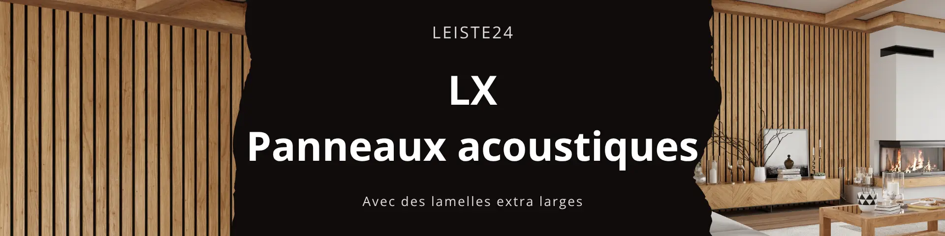 Découvrez nos panneaux acoustiques LX de haute qualité dans les dimensions 2600 x 400 mm, équipés de larges lamelles de 60 mm pour un aspect particulièrement attrayant. Ces panneaux ne sont pas seulement une amélioration acoustique pour chaque pièce, mais aussi un point fort visuel. Les larges lamelles confèrent aux panneaux un aspect moderne et structuré qui s'intègre parfaitement dans les intérieurs contemporains.