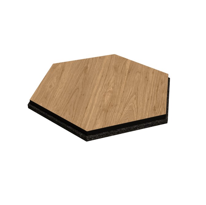 Lambris hexagonal NANO - chêne naturelApportez un style unique et une meilleure acoustique à votre maison ! Le revêtement mural hexagonal NANO en chêne naturel combine un décor en bois MDF noble avec du feutre noir et donne une touche moderne à chaque pièce.Un design de haute qualité & une forte acoustiqueUn aspect noble: Décor chêne naturel avec des bords précis Acoustique optimisée: Le feutre noir assure l'absorption du son Conception flexible: Format hexagonal pour des motifs créatifs Facile à installer: Facile à fixer avec de la colle ou du ruban adhésif double face Dimensions: Longueur des côtés : 150 mm | Largeur totale : environ 300 mm | Hauteur : environ 260 mm Créez un look élégant et améliorez l'acoustique de votre pièce grâce au revêtement mural NANO Hexagon pour votre salon ou votre bureau. Commandez maintenant et améliorez votre intérieur!