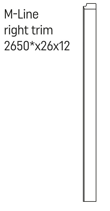 VOX Linerio M-Line Finition droite - NoyerLa finition droite VOX Linerio M-Line est la solution idéale pour finir proprement et avec style le côté droit de vos panneaux muraux Linerio M-Line. La couleur et l'épaisseur de la plinthe sont parfaitement assorties à la série de panneaux et garantissent un look harmonieux et moderne.Caractéristiques et avantages du produitFinition droite parfaite pour les panneaux Linerio M-Line Fabriqué en polystyrène recyclable de haute qualité Surface imprimée thermiquement pour un aspect élégant Léger, durable et facile d'entretien 100 % recyclable et respectueux de l'environnement Montage simple et rapideDécoupez la baguette à la longueur souhaitée Fixez-la directement au mur ou au plafond à l'aide de la colle de montage Aucun outil spécial n'est nécessaire Caractéristiques techniquesLongueur : 2650 mm Largeur : 26 mm Épaisseur : 12 mm Couleur : Noyer Matériau : polystyrène avec surface thermo-imprimée Avec la finition droite VOX Linerio M-Line, vous obtenez non seulement une finition fonctionnelle, mais aussi un détail élégant qui complète parfaitement votre décoration murale.