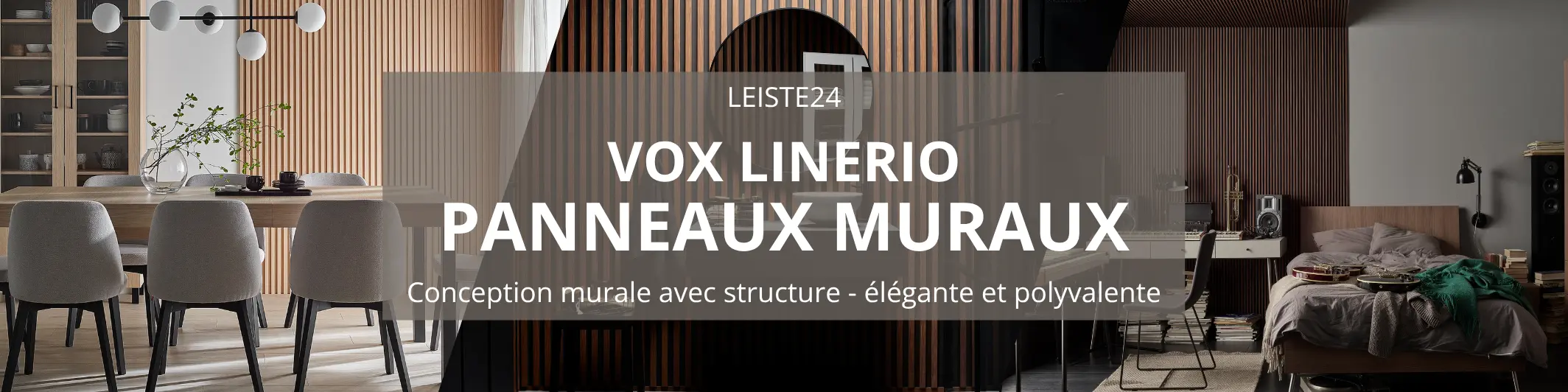 Panneaux muraux VOX Linerio M-Line - Chêne naturelATTENTION ! Vous recevrez un ÉCHANTILLON de 15 cm de longLes panneaux muraux VOX Linerio M-Line apportent une atmosphère moderne, lumineuse et élégante à chaque pièce. Grâce à leurs structures à lamelles moyennes, ils garantissent des lignes claires et un design intemporel qui s'intègre harmonieusement dans presque tous les styles d'intérieur. Leurs couleurs attrayantes agrandissent et égayent les pièces.De nombreuses possibilités d'aménagementQue ce soit à la verticale, à l'horizontale ou en diagonale, le montage des panneaux M-Line est simple et flexible. Ils conviennent parfaitement aux salons, chambres à coucher, bureaux ou encore aux pièces humides telles que les cuisines et les salles de bains (sans contact direct avec l'eau). Grâce à la qualité supérieure des matériaux, les panneaux sont résistants aux rayures, anti-salissures et entièrement recyclables.Acoustique optimale et confort de vieLa structure lamellaire spéciale améliore l'acoustique de la pièce et réduit les réverbérations gênantes. Il en résulte une atmosphère agréablement calme et confortable, idéale pour les espaces de vie et de travail.Montage simple et rapideDécoupe facile à la taille souhaitée Montage avec de la colle directement sur le mur ou le plafond Aucun outil spécial nécessaire Les avantages du produit en un coup d'ilDécor élégant et intemporel pour de nombreuses combinaisons possibles Polystyrène 100 % recyclable et durable Résistant aux rayures et facile d'entretien Améliore l'acoustique de la pièce Convient aux pièces humides Caractéristiques techniquesLongueur : 2650 mm Largeur : brute 122 mm / nette 115 mm Épaisseur : 12 mm Couleur : Chêne naturelAvec les panneaux muraux VOX Linerio M-Line, vous apportez une touche élégante et créez une ambiance harmonieuse et moderne, tout simplement, rapidement et sans effort.