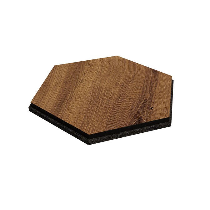 Lambris hexagonal NANO - chêne rustiqueApportez un style unique et une meilleure acoustique à votre maison ! Le revêtement mural hexagonal NANO en chêne rustique combine un décor en bois MDF noble avec du feutre noir et donne une touche moderne à chaque pièce.Un design de haute qualité & une forte acoustiqueUn aspect noble: Décor chêne naturel avec des bords précis Acoustique optimisée: Le feutre noir assure l'absorption du son Conception flexible: Format hexagonal pour des motifs créatifs Facile à installer: Facile à fixer avec de la colle ou du ruban adhésif double face Dimensions: Longueur des côtés : 150 mm | Largeur totale : environ 300 mm | Hauteur : environ 260 mm Créez un look élégant et améliorez l'acoustique de votre pièce grâce au revêtement mural NANO Hexagon pour votre salon ou votre bureau. Commandez maintenant et améliorez votre intérieur!