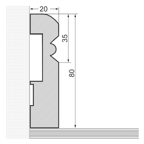 Plinthe en bois véritable profil Vieux Rhin 80mm pin laqué
