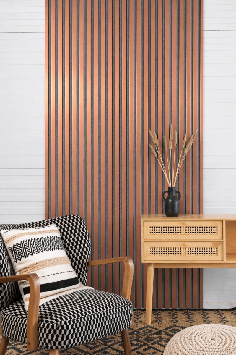 - Lamelles en MDF avec placage décoratif de qualité en cuivre