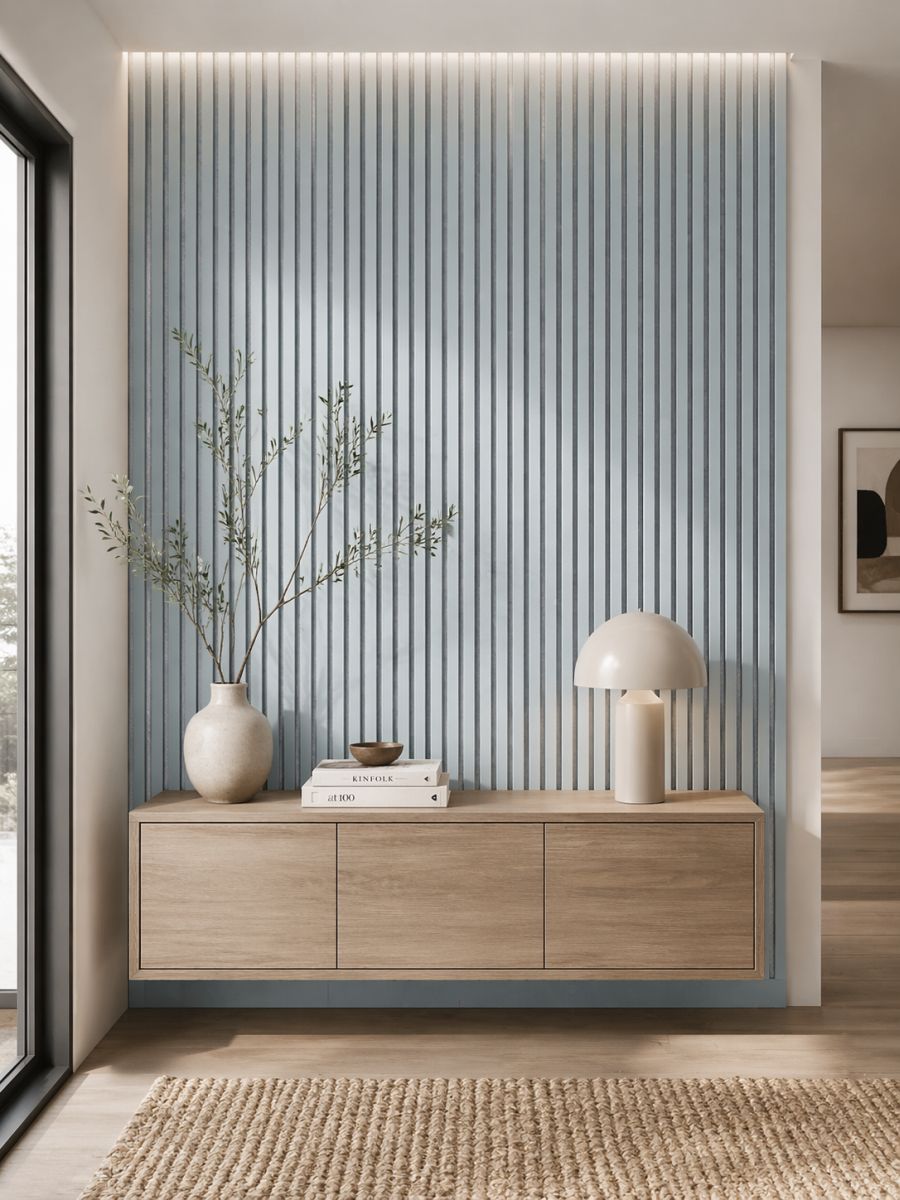 Panneau acoustique Acoustic+ 3000 x 400 mm Blanc - Feutre acoustique GrisPanneaux acoustiques haut de gamme dotés de la technologie CleanEdge : pas de bords visibles, aspect lamellé moderne et une acoustique ambiante nettement amélioréeLes panneaux acoustiques Acoustic+ grand format aux dimensions 3000 x 400 mm offrent un aspect mural particulièrement harmonieux et continu, sans transitions gênantes. La combinaison d'un aspect lamellaire moderne, d'une isolation acoustique fonctionnelle et de la technologie CleanEdge en fait la solution idéale pour des aménagements muraux haut de gamme.Technologie CleanEdge la différence visible Lamelles entièrement recouvertes sans bords coupés apparents Esthétique soignée et haut de gamme sous tous les angles Nettement plus élégant que les panneaux acoustiques classiques aux bords MDF apparentsPourquoi choisir les panneaux acoustiques Acoustic+ de Leiste24 ? Améliorent sensiblement l'acoustique de la pièce Esthétique moderne des murs à lamelles pour plus de profondeur et de structure Montage simple par collage ou vissage Finition haut de gamme pour des solutions murales durablesDétails du produit Lamelles en MDF avec revêtement décoratif de qualité en blanc Dimensions : 3000 x 400 x 20 mm Feutre : gris (8 mm d'épaisseur) Matériau : MDF Dimensions des lamelles : 27 mm de largeur et 12 mm d'épaisseur Espacement entre les lamelles : 18 mm Panneaux muraux entièrement pré-assemblés Montage Le revêtement à lamelles est très rapide et facile à monter. Vous pouvez soit coller, soit visser les panneaux acoustiques au mur. Pour le plafond, nous recommandons de E coller et visserE en E combinaisonE La combinaison parfaite entre design et fonctionnalité pour des pièces qui ne sont pas seulement esthétiques, mais aussi plus agréables à vivre.