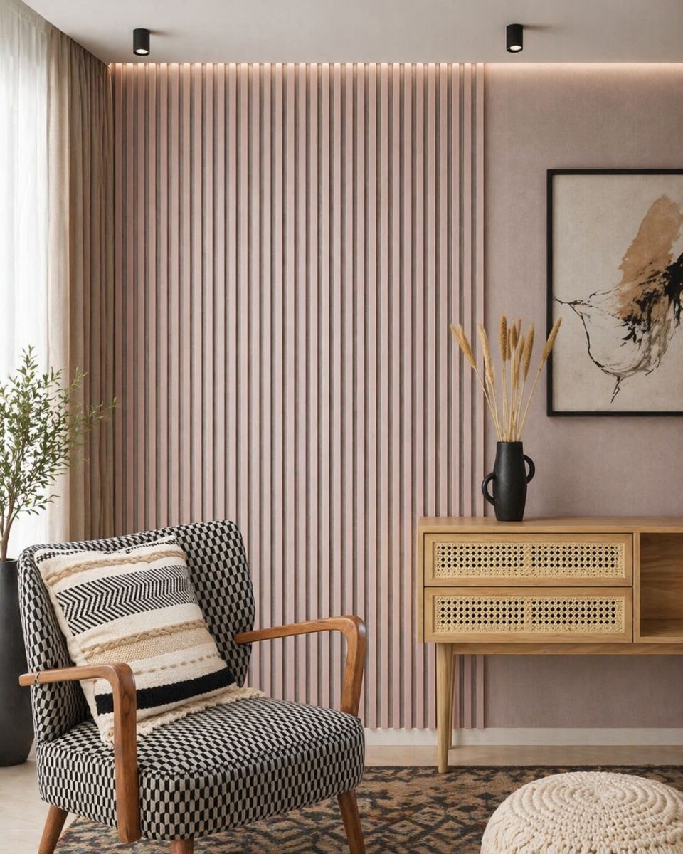 Panneau acoustique Acoustic+ 3000 x 400 mm Rose - feutre acoustique noirPanneaux acoustiques haut de gamme dotés de la technologie CleanEdge : pas de bords visibles, aspect lamellé moderne et une acoustique de la pièce nettement amélioréeLes panneaux acoustiques Acoustic+ grand format aux dimensions 3000 x 400 mm offrent un aspect mural particulièrement harmonieux et homogène, sans transitions gênantes. La combinaison d'un aspect lamellaire moderne, d'une isolation acoustique fonctionnelle et de la technologie CleanEdge en fait la solution idéale pour des aménagements muraux haut de gamme.Technologie CleanEdge la différence visible Lamelles entièrement recouvertes sans bords coupés apparents Esthétique soignée et haut de gamme sous tous les angles Nettement plus élégant que les panneaux acoustiques classiques aux bords MDF apparentsPourquoi choisir les panneaux acoustiques Acoustic+ de Leiste24 ? Améliorent sensiblement l'acoustique de la pièce Aspect moderne de mur à lamelles pour plus de profondeur et de structure Montage simple par collage ou vissage Finition haut de gamme pour des solutions murales durablesDétails du produit Lamelles en MDF avec placage décoratif de qualité en rose Dimensions : 3000 x 400 x 20 mm Feutre : noir (8 mm d'épaisseur) Matériau : MDF Dimensions des lamelles : 27 mm de largeur et 12 mm d'épaisseur Espacement entre les lamelles : 18 mm Panneaux muraux entièrement pré-assemblés Montage Le revêtement à lamelles est très rapide et facile à monter. Vous pouvez soit coller, soit visser les panneaux acoustiques au mur. Pour le plafond, nous recommandons de E coller et visserE en E combinaisonE La combinaison parfaite entre design et fonctionnalité pour des pièces qui ne sont pas seulement esthétiques, mais aussi plus agréables à vivre.