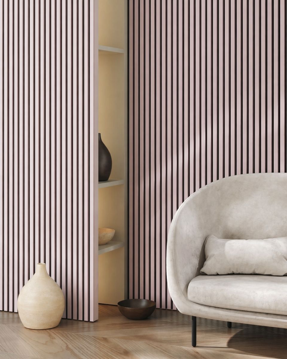 Panneau acoustique Acoustic+ 3000 x 400 mm Rose - Feutre acoustique grisPanneaux acoustiques haut de gamme dotés de la technologie CleanEdge : pas de bords visibles, aspect lamellé moderne et une acoustique de la pièce nettement amélioréeLes panneaux acoustiques Acoustic+ grand format aux dimensions 3000 x 400 mm offrent un aspect mural particulièrement harmonieux et homogène, sans transitions gênantes. La combinaison d'un aspect lamellaire moderne, d'une isolation acoustique fonctionnelle et de la technologie CleanEdge en fait la solution idéale pour des aménagements muraux haut de gamme.Technologie CleanEdge la différence visible Lamelles entièrement recouvertes sans bords coupés apparents Esthétique soignée et haut de gamme sous tous les angles Nettement plus élégant que les panneaux acoustiques classiques aux bords MDF apparentsPourquoi choisir les panneaux acoustiques Acoustic+ de Leiste24 ? Améliorent sensiblement l'acoustique de la pièce Aspect moderne de mur à lamelles pour plus de profondeur et de structure Montage simple par collage ou vissage Finition haut de gamme pour des solutions murales durablesDétails du produit Lamelles en MDF avec placage décoratif de qualité en rose Dimensions : 3000 x 400 x 20 mm Feutre : gris (8 mm d'épaisseur) Matériau : MDF Dimensions des lamelles : 27 mm de largeur et 12 mm d'épaisseur Espacement entre les lamelles : 18 mm Panneaux muraux entièrement pré-assemblés Montage Le revêtement à lamelles est très rapide et facile à monter. Vous pouvez soit coller, soit visser les panneaux acoustiques au mur. Pour le plafond, nous recommandons de E coller et visserE en E combinaisonE La combinaison parfaite entre design et fonctionnalité pour des pièces qui ne sont pas seulement esthétiques, mais aussi plus agréables à vivre.