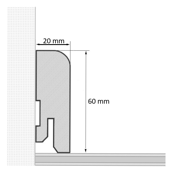 Leistenclips mit integriertem Kabelkanal zur perfekten Montage unserer Massivholz-Sockelleisten mit integrierter Clipfräsung, passend für alle Höhen von 40 mm bis 120 mm.