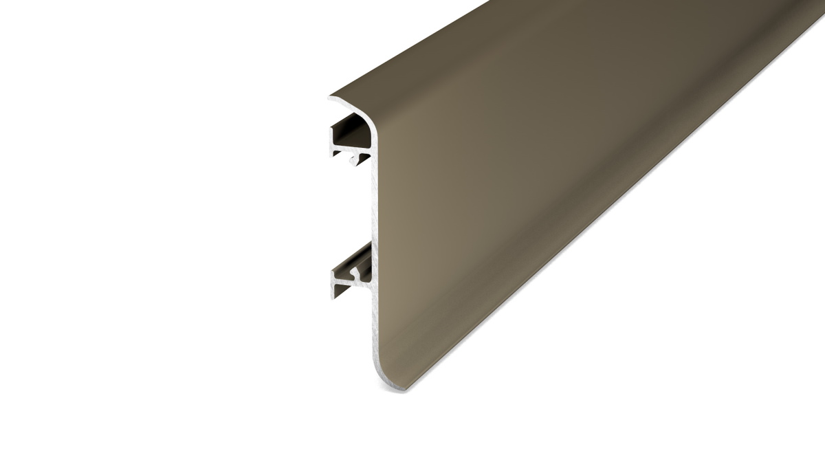 Metallsockelleiste aus Aluminium in "Edelstahl matt" für einen eleganten und ansprechend aussehenden Übergang.