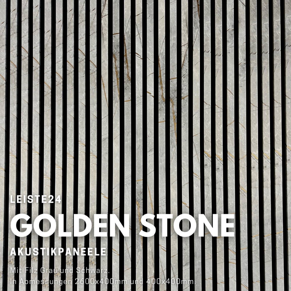 Muster - Lamellenverkleidung - Wandverkleidung - Akustikpaneel ca 130 x 100 mm Golden Stone - Akustikfilz Grau ACHTUNG! Sie erhalten ein MUSTER mit 3 Lamellen auf Akustikfilz ca 130 x 100 mm. Verbessern Sie die Akustik Ihres Raumes und bekommen sie den WOW-Effekt Unsere universell einsetzbare Wandverkleidung ist eine schwarze Matte aus Filz, auf dem MDF Leisten angebracht sind. Egal ob horizontal, vertikal oder diagonal, Sie werden von der außergewöhnlichen Optik begeistert sein. Sogar an der Decke können Sie die Lamellenverkleidung anbringen. Zusätzlich zur großartigen Optik können Sie durch die Filzmatte auch den Schall in Ihrem Raum verringern. Die Paneele erhalten Sie in einem Stück, sodass Sie diese sofort montieren können. Bei der Montage sind Ihrer Kreativität keine Grenzen gesetzt. Daten im Überblick: Maße: ca. 20 mm x 130mm x 100 mm Filzmatte in Grau 8mm stark 12mm starke Lamellen aus MDF mit Qualitäts-Dekorkaschierung in Golden Stone Abstände zwischen den Lamellen 18mm komplett vormontiert Die Montage Die Lamellenverkleidung ist sehr schnell und einfach zu montieren. Entweder Sie Schrauben oder Kleben die Lamellenverkleidung an die Wand. Sie können die Paneele nach genauer Platzierung mit einfachen Schrauben an der Wand fixieren. Alternativ können Sie die Platten auch mit Montagekleber befestigen. Für die Decke empfehlen wir Schrauben und Kleben in Kombination.