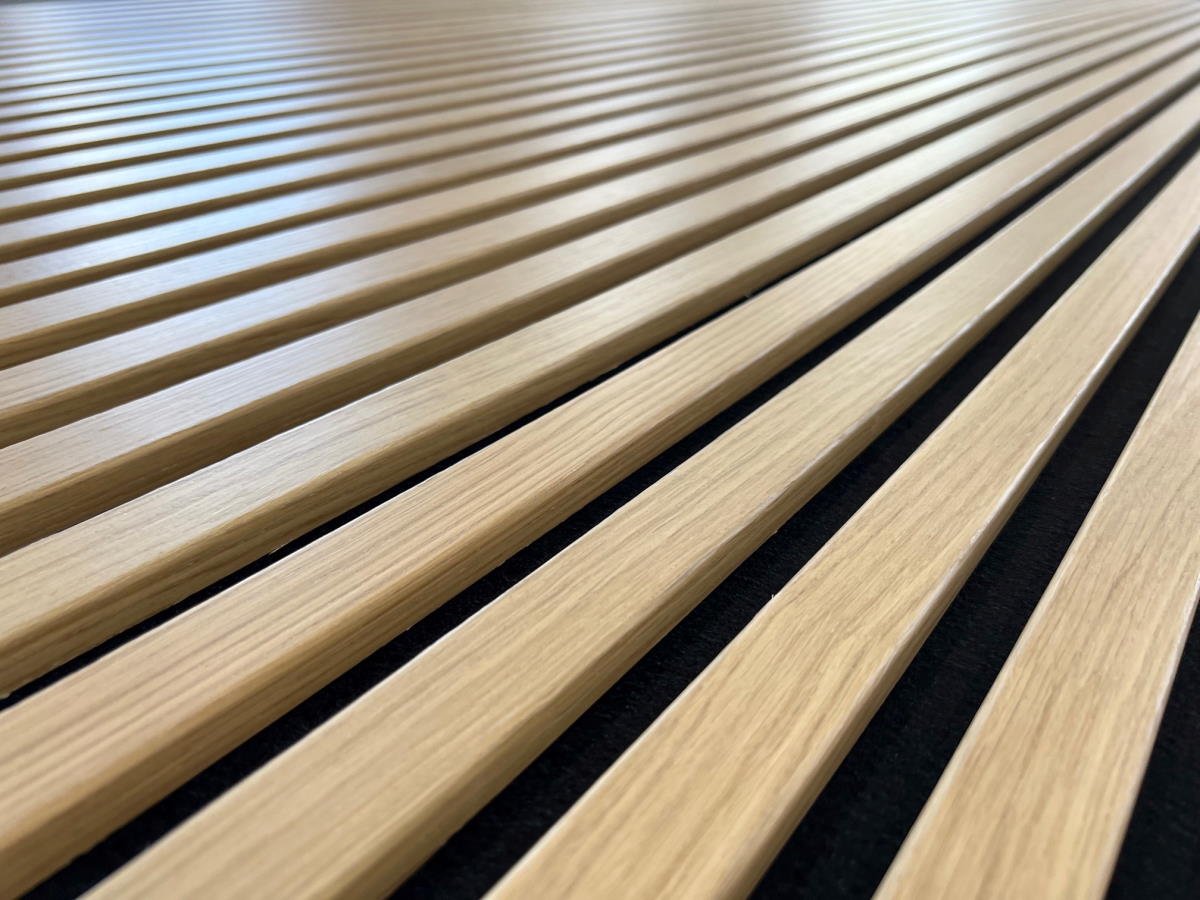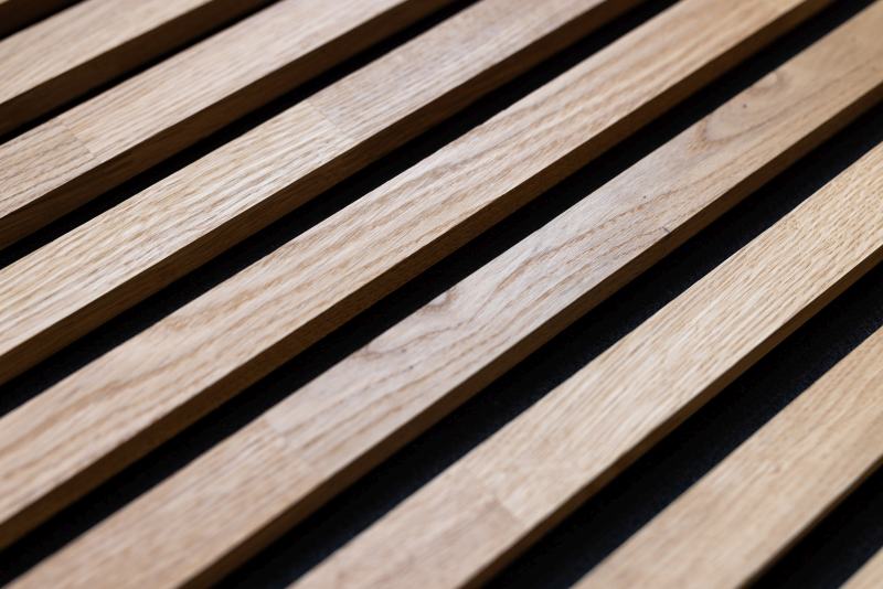 Muster für Massivholz Akustikpaneel 130 x 100 mm Eiche natur geölt - Akustikfilz Schwarz