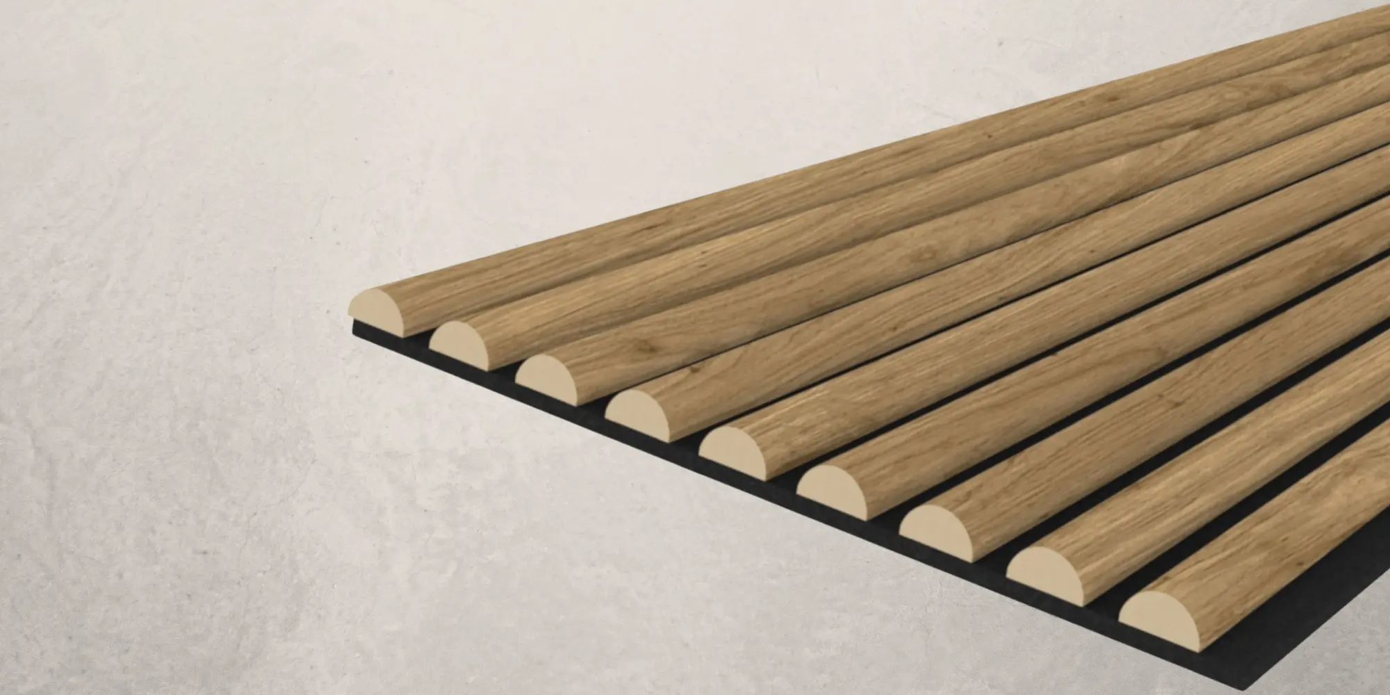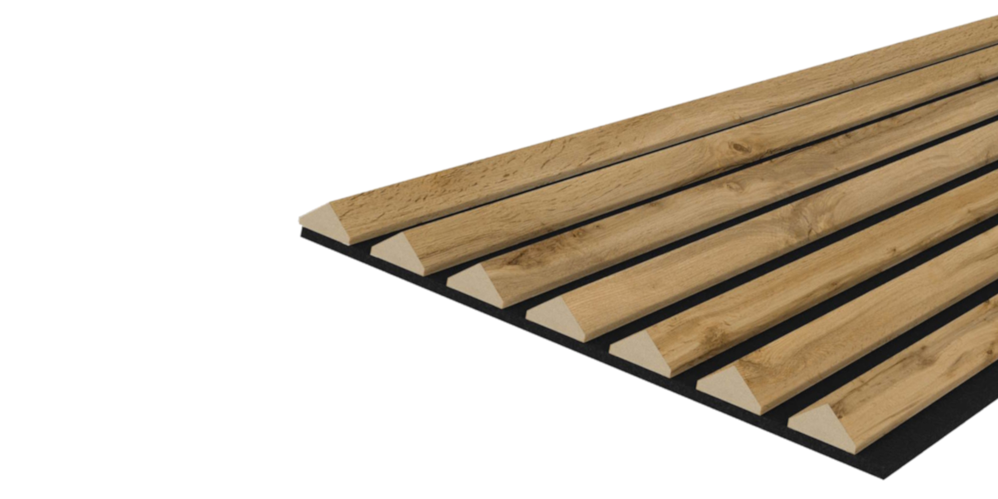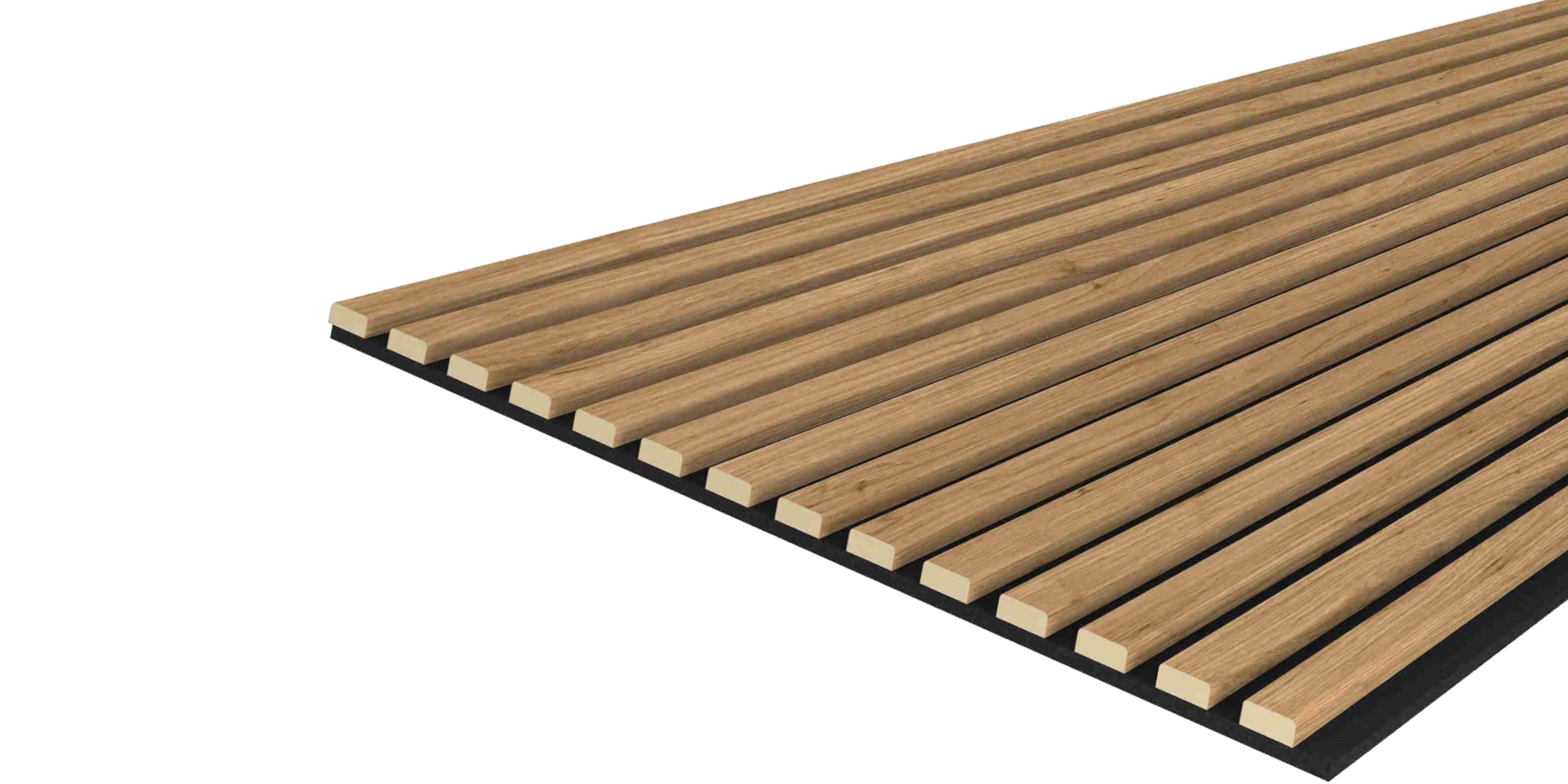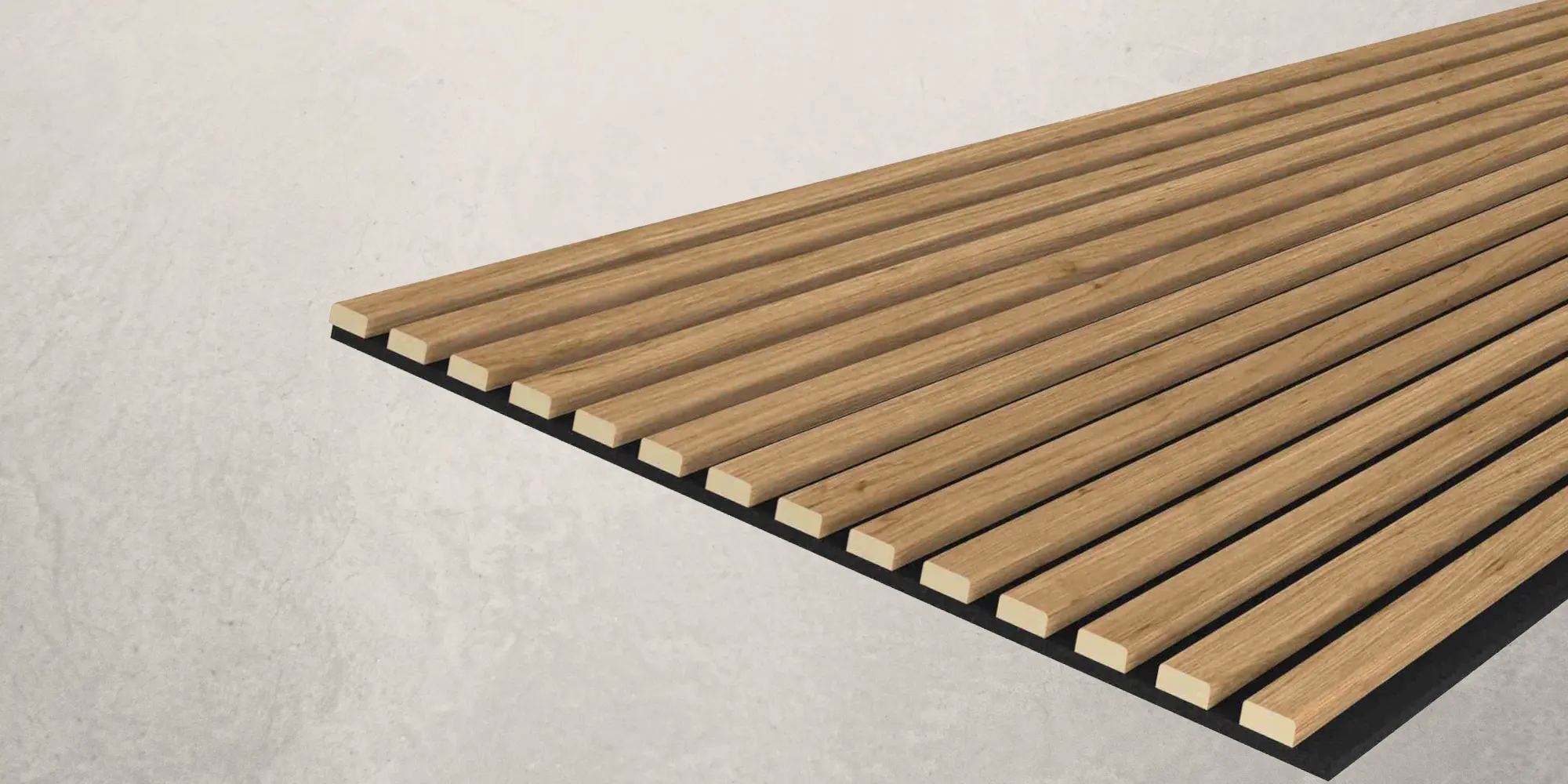 Acoustic+ Akustikpaneel 2400 x 600 mm Eiche Natur - Akustikfilz Schwarz Hochwertige Akustikpaneele mit CleanEdge-Technologie - keine sichtbaren Kanten, moderne Lamellenoptik und spürbar bessere Raumakustik Verleihen Sie Ihren Räumen mehr Tiefe, Struktur und Ruhe. Die Acoustic+ Akustikpaneele von Leiste24 verbinden moderne Lamellenoptik mit funktionaler Schalldämmung und hochwertiger Verarbeitung. Ideal als Wandverkleidung für Wohnräume, Büros oder Flure - besonders geeignet für großflächige, moderne Wandgestaltungen. CleanEdge-Technologie - der sichtbare Unterschied Voll ummantelte Lamellen ohne offene Schnittkanten Saubere, hochwertige Optik aus jedem Blickwinkel Deutlich edler als herkömmliche Akustikpaneele mit sichtbaren MDF-Kanten Warum Acoustic+ Akustikpaneele von Leiste24? Verbessern die Raumakustik spürbar Moderne Lamellenwand-Optik für mehr Tiefe und Struktur Einfache Montage durch Kleben oder Schrauben Hochwertige Verarbeitung für langlebige Wandlösungen Produktdetails Lamellen aus MDF mit Qualitäts-Dekorkaschierung in Eiche Natur Maße: 2400 x 600 x 20 mm Filz: Schwarz (8 mm stark) Material: MDF Maße der Lamellen: 27 mm breit und 12 mm stark Abstände zwischen den Lamellen: 16 mm Wandpaneele komplett vormontiert Montage Die Lamellenverkleidung ist sehr schnell und einfach zu montieren. Entweder Sie kleben oder schrauben die Akustikpaneele an die Wand. Für die Decke empfehlen wir Kleben und Schrauben in Kombination. Die perfekte Kombination aus Design und Funktion für Räume, die nicht nur gut aussehen, sondern sich auch besser anfühlen.