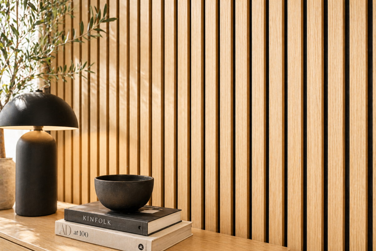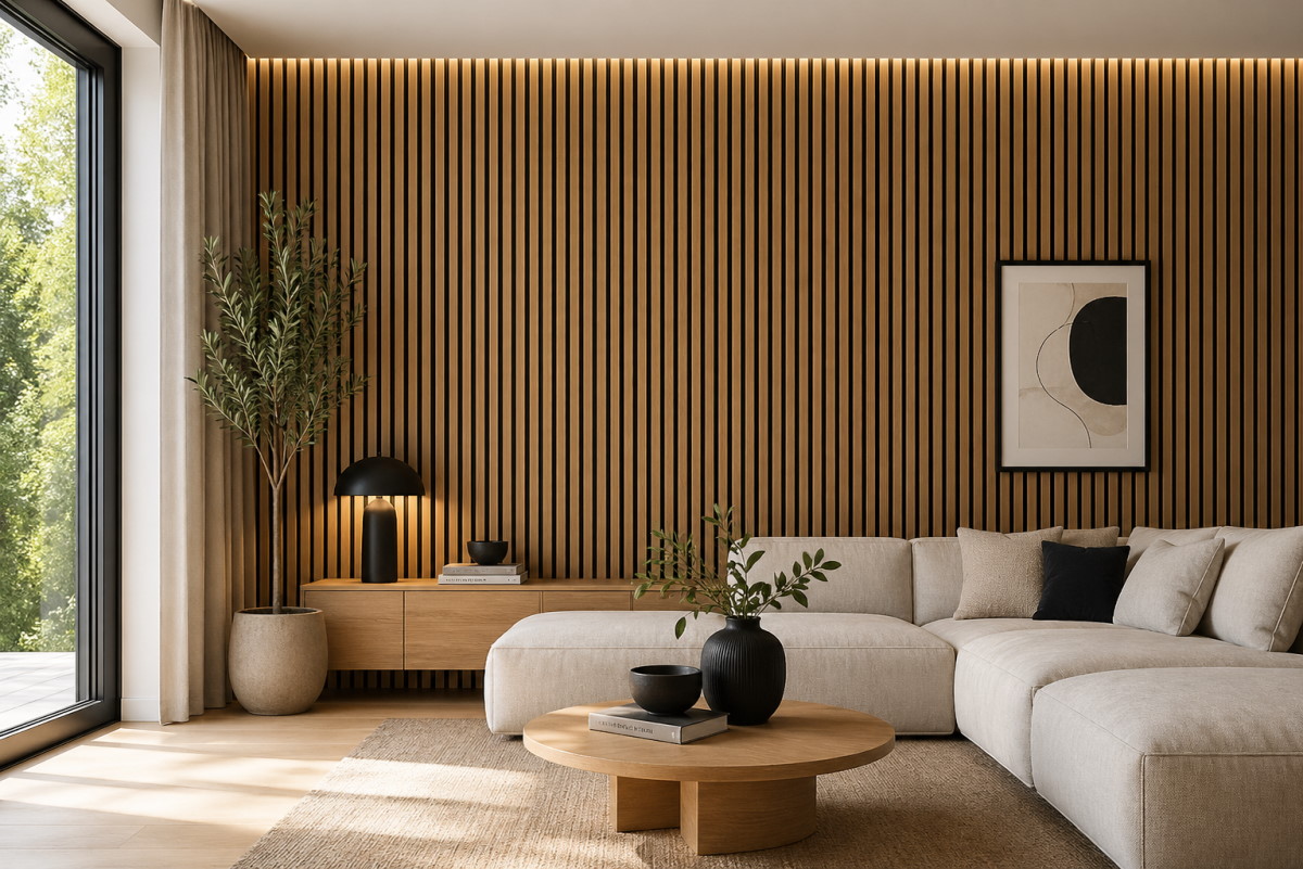 - Moderne Lamellenwand-Optik für mehr Tiefe und Struktur