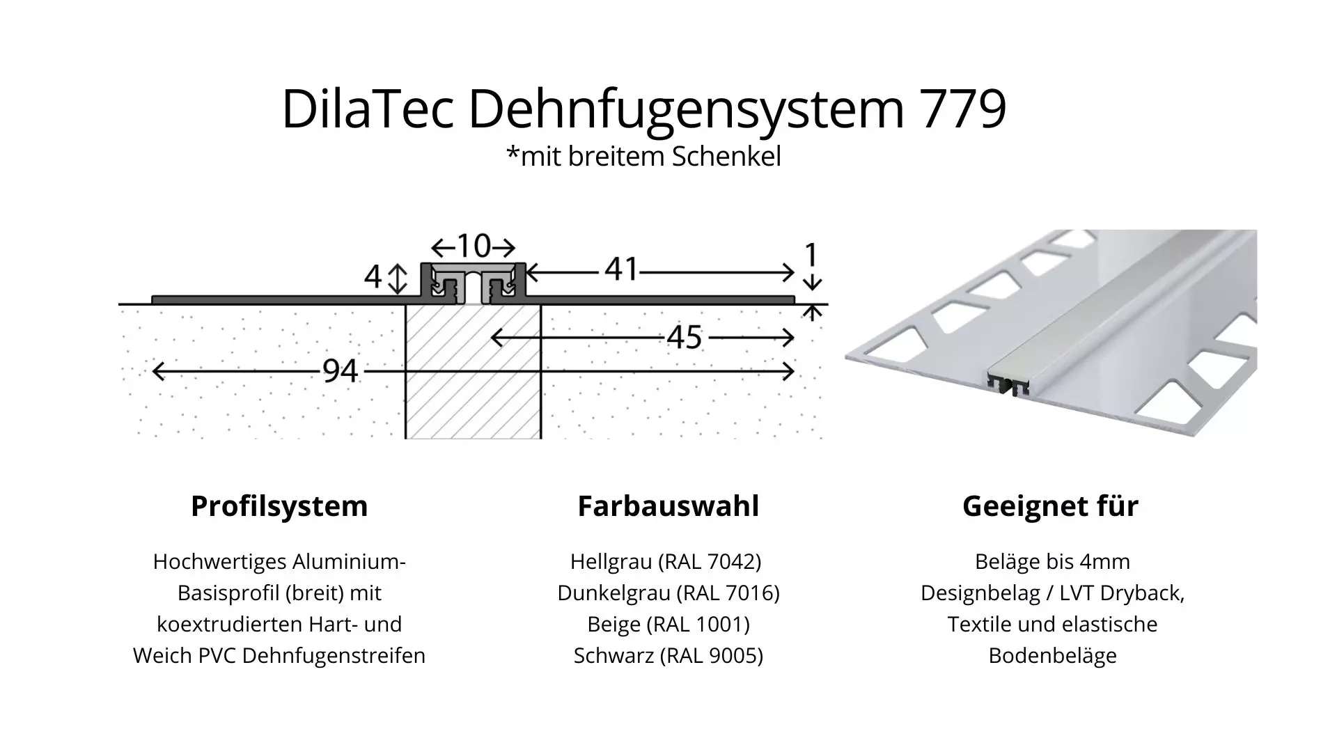 Ob für Fliesen, Laminat, Parkett oder Beton - unser Sortiment an Dehnungsfugen umfasst verschiedene Profile und Breiten, um unterschiedlichen Bodenbelägen gerecht zu werden. Wählen Sie aus Systemen wie dem DilaTec-System, Aluminium-Dehnungsfugen, Edelstahl-Dehnungsfugen und Korkstreifen, um die ideale Lösung für Ihre Anforderungen zu finden.