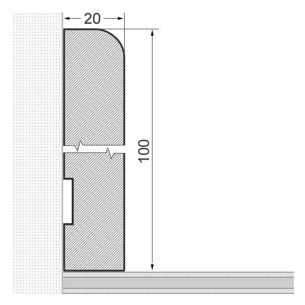 Massivholz-Sockelleiste abgerundet 100mm - Kiefer roh