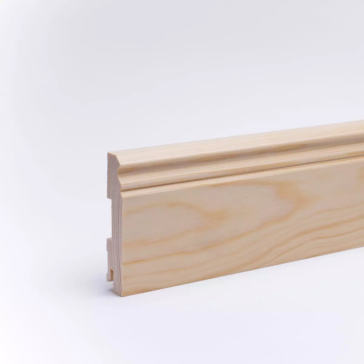 Unsere hochwertigen Sockelleisten Berliner Profil 120 mm fertigen wir aus massivem Kiefernholz. Damit verbindet diese Massivholzleiste Natürlichkeit mit höchster Stabilität, für einen perfekten Übergang zwischen Wand und Boden, sowie ein harmonisches Raumbild.