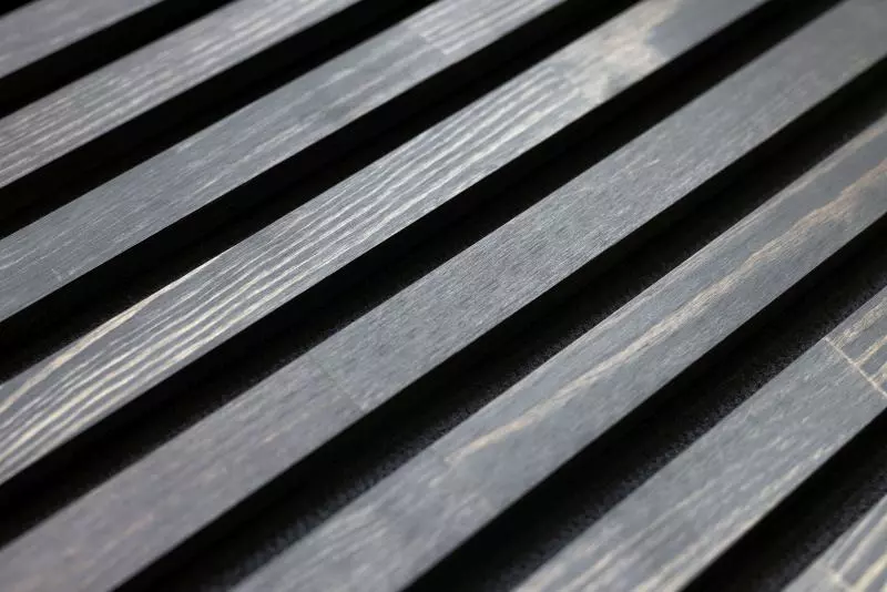 Lamellenverkleidung - Wandverkleidung - Massivholz Akustikpaneel 2600 x 400 mm Kiefer BASALT - Akustikfilz Schwarz