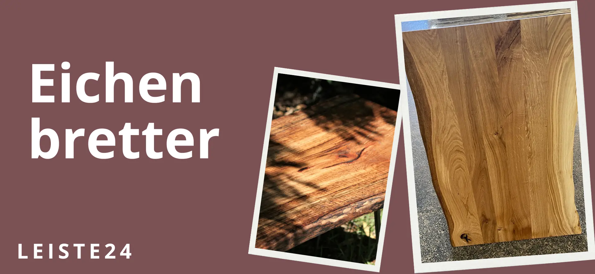 Rustikale Bretter, Bohlen und Platten aus massiven Eichenholz mit natürlicher Baumkante - unbesäumt und entrindet.