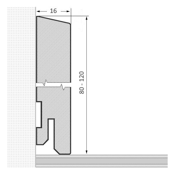 - Abmessung: 80 X 16 mm Länge: 1.000 - 2.400 mm fallende Längen