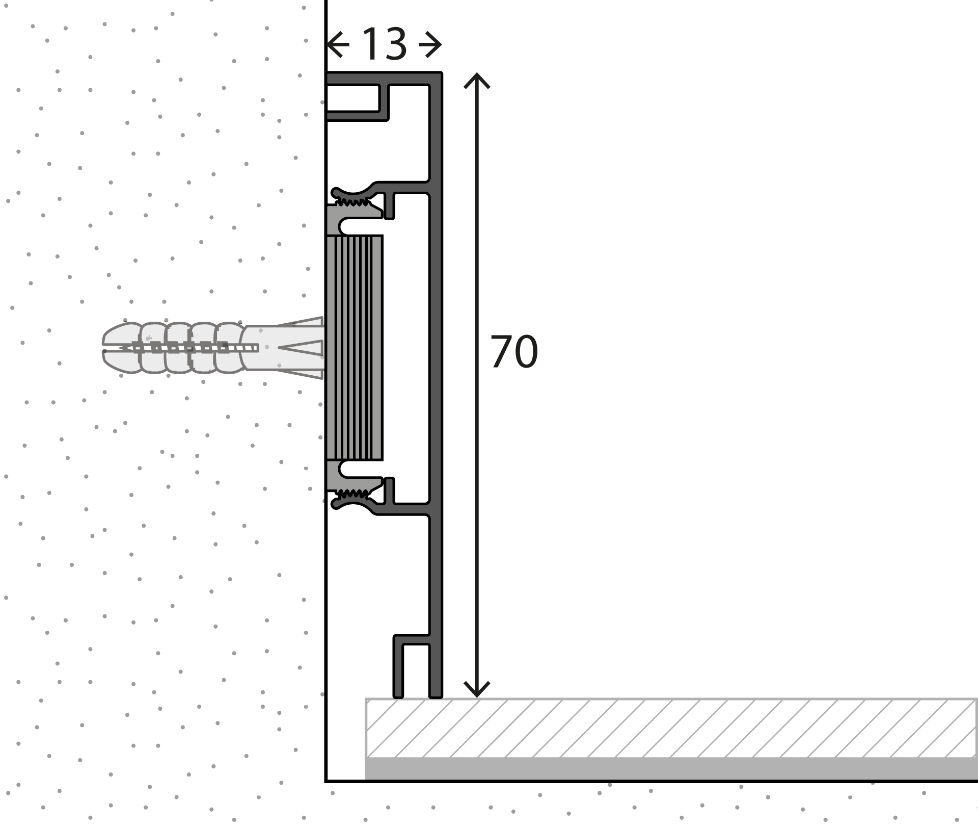 Suitable for: Metal skirting 70 x 13 mm - aluminium silver