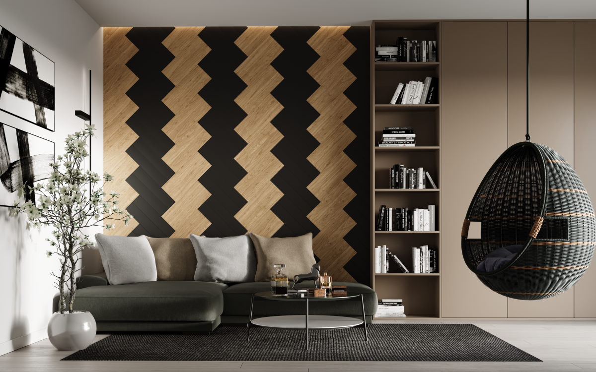 Ya sea como pared decorativa en el salón, como detalle elegante en el dormitorio o como revestimiento moderno en el pasillo, el revestimiento de pared FLEX crea un ambiente cálido y acogedor.