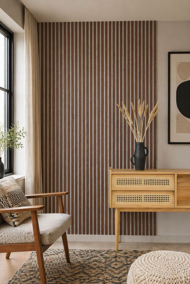 Panneau acoustique Acoustic+ en bois massif noir 2600 x 400 mm - Chêne naturel - Safran Red