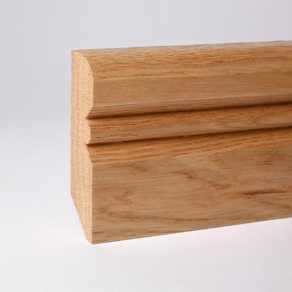 Plinthes en bois massiv avec profil Vieux Rhin dans les dimensions 80 mm x 20 mm x 2.400 mm. Les plinthes sont faites d'une pièce, avec la structure naturelle du tronc d'arbre. Ceci crée une image harmonieuse dans la structure de la couleur et du bois.