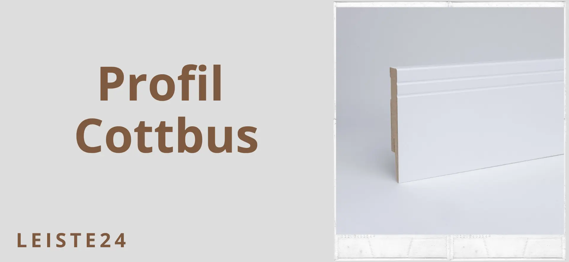 Plinthe profil Cottbusser 100 mm en blancNotre plinthe blanche au profil Cottbusser classique embellit chaque pièce grâce à son style sobre et intemporel. Grâce à leur système de clips simple, nos plinthes au profil Cottbusser se fixent facilement au mur. Elles sont disponibles dans les dimensions 17 mm x 100 mm x 2 400 mm. Noyau en MDF (panneau de fibres à densité moyenne) Revêtement décoratif « blanc » Forme : profil Cottbus Fixation : système à clip, collage ou vissage Dimensions : 17 x 100 x 2 400 mmMatériau :La plinthe est dotée d'un noyau en MDF (panneau de fibres de bois de densité moyenne). Celui-ci confère à la plinthe une flexibilité et une stabilité suffisantes.Le revêtement décoratif de qualité confère non seulement un aspect esthétique au profil Cottbusser, mais lui apporte également une protection supplémentaire. La surface est ainsi résistante aux rayures et garantit la longévité de la plinthe. Montage :Les plinthes sont fixées au mur à l'aide d'un système de clips et peuvent être démontées sans dommage si nécessaire, par exemple lors de travaux de rénovation. Le canal de câbles intégré vous permet de dissimuler les câbles derrière la plinthe. Vous pouvez également fixer les plinthes à l'aide de colle pour plinthes, de ruban adhésif double face ou du kit de fixation.