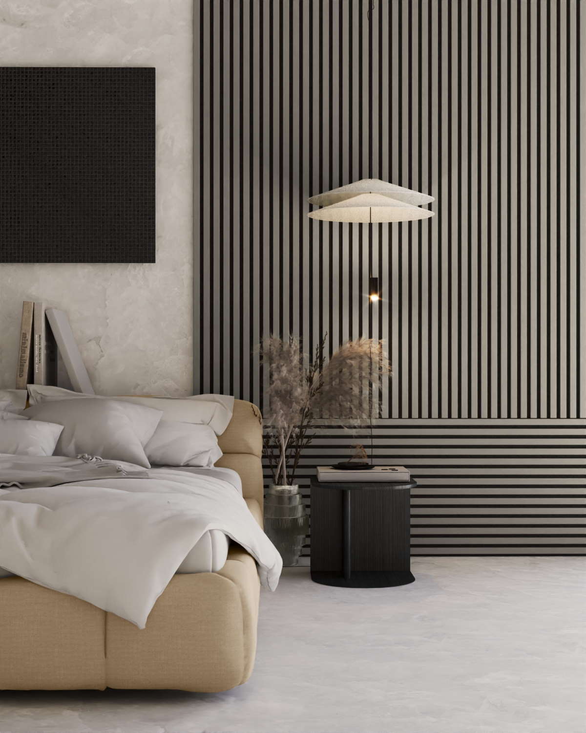 Pannello acustico 3000 x 400 mm Grigio sabbia - Feltro acustico nero - Pannello di rivestimento per