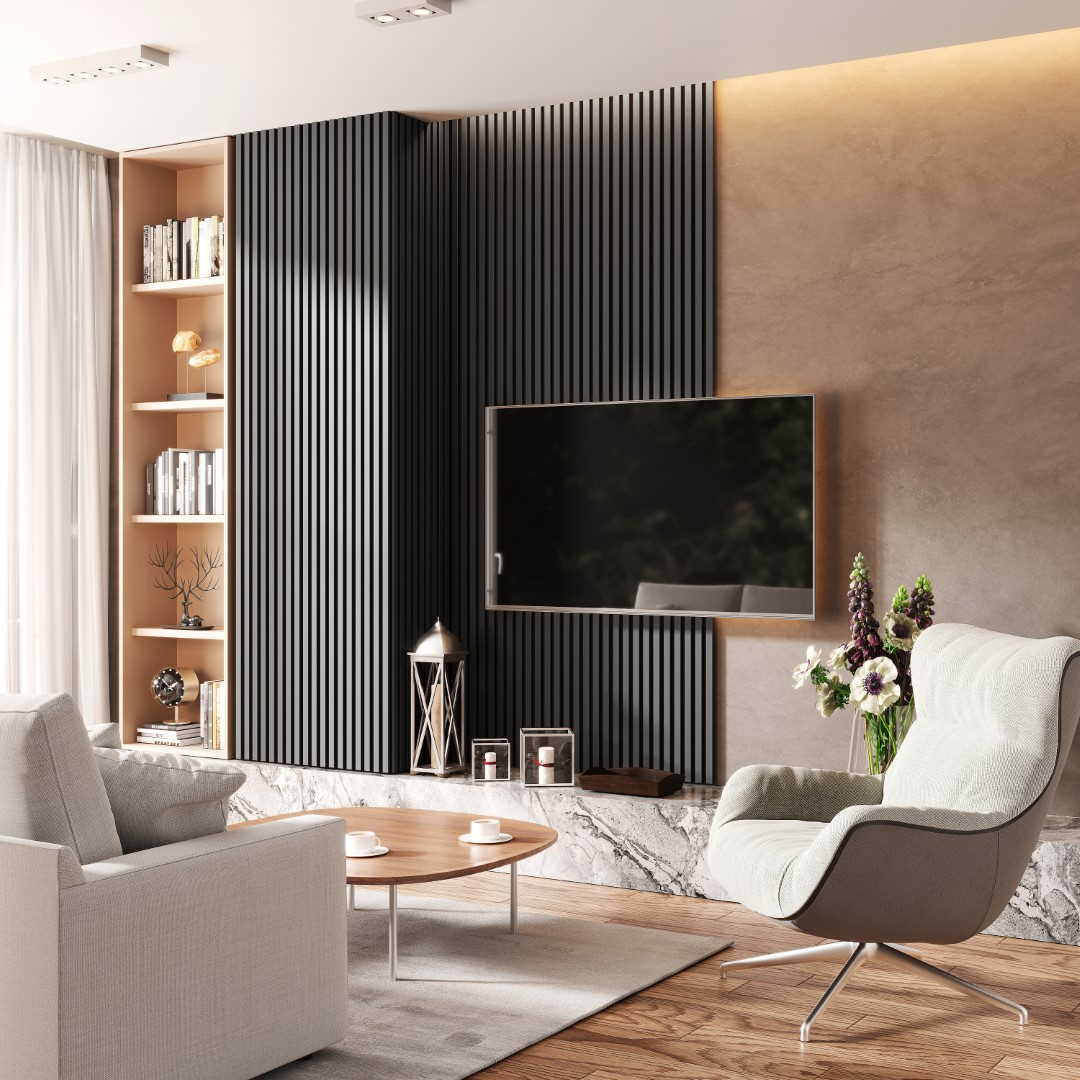 Pannelli acustici di alta qualità con tecnologia CleanEdge - nessun bordo visibile, moderno effetto a lamelle e acustica ambientale notevolmente migliorata