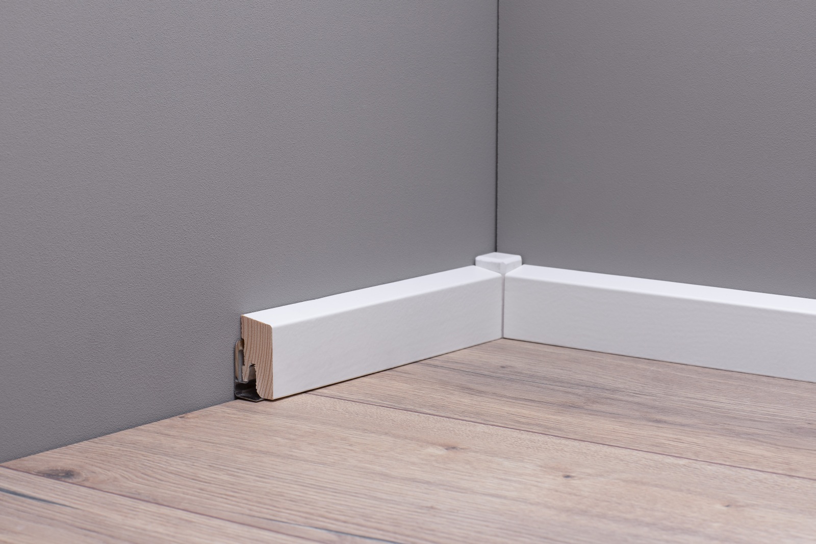 Durch das praktische ClipSystem lassen sich die Sockelleisten schnell und einfach an der Wand montieren.