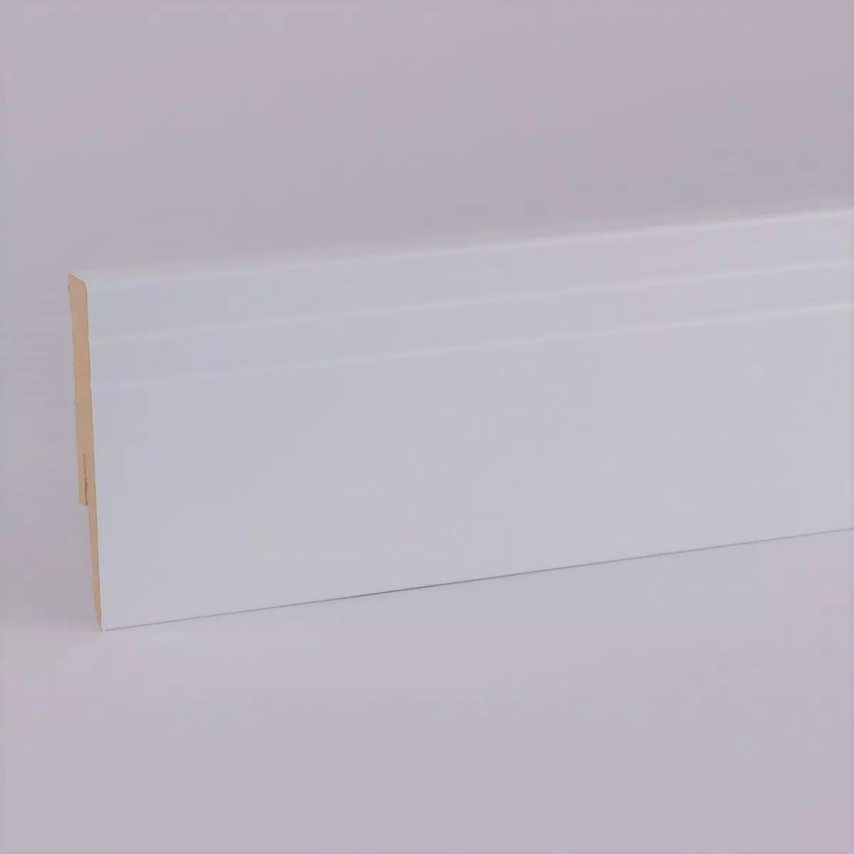 Order modern skirting and skirting boards online with the MDF skirting boards Cottbusser profile in white from leiste24. The high-quality strips with Cottbusser profile are available in the heights 80, 100, 120 and 150mm and impress with their precisely fitting production and a modern look. The integrated cable duct also enables all types of cables to be laid hidden between the wall and the skirting board.