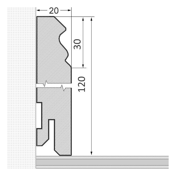 - Abmessung: 120 x 20 x 2.400 mm