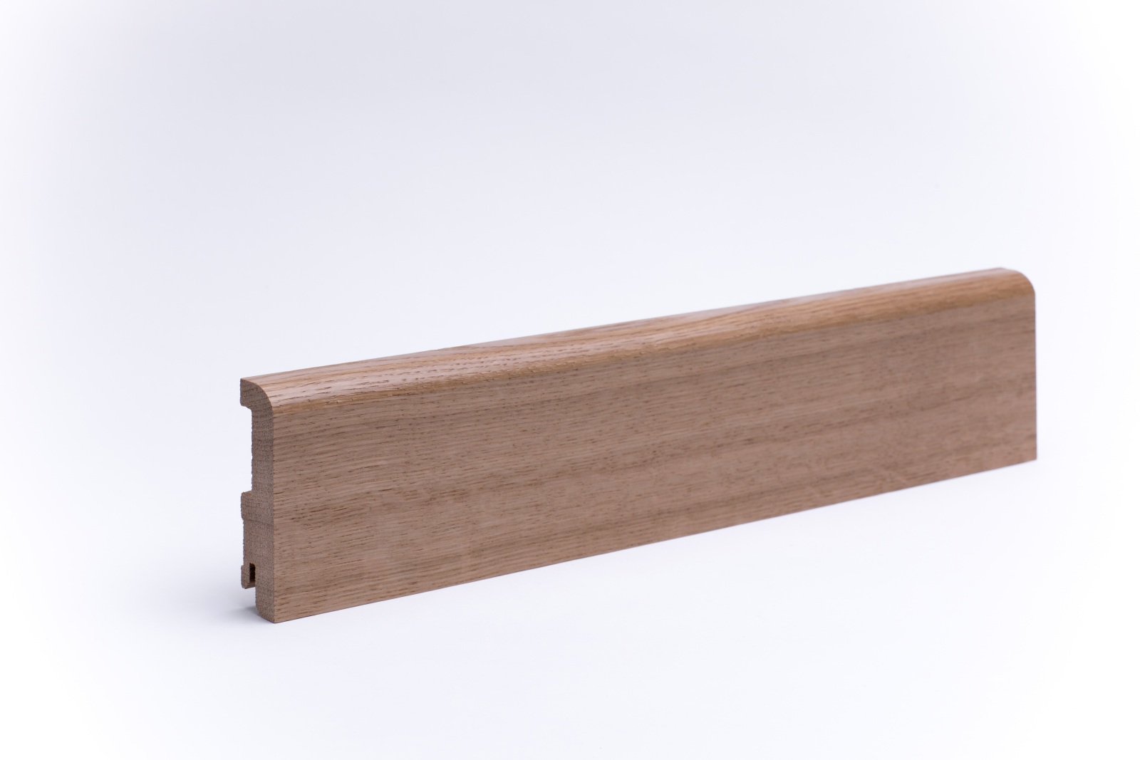 Unsere hochwertigen Sockelleisten Rundkante 80 mm fertigen wir aus massivem Eichenholz. Damit verbindet diese Massivholzleiste edles Design mit höchster Stabilität, für einen perfekten Übergang zwischen Wand und Boden, sowie ein harmonisches Raumbild.