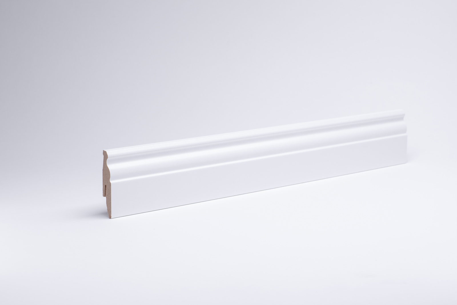Der MDF-Kern ist mit einer Grundierfolie ummantelt. Sie können die weiße Fußleiste, durch ihre individuelle Gestaltung, in einer tollen Optik erstrahlen lassen.