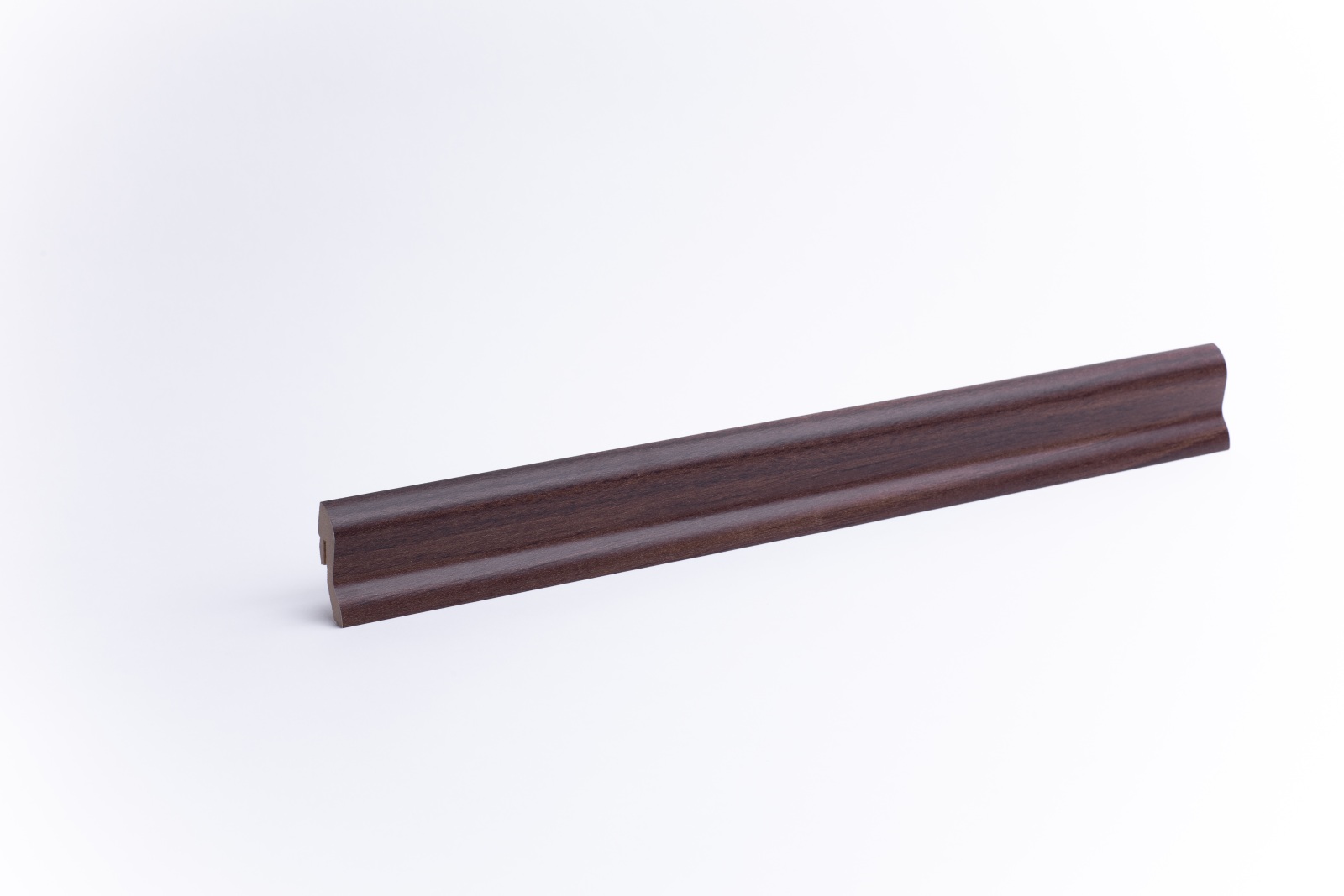 Unsere Sockelleisten 40 mm mit Holzoptik Nussbaum, im geschwungenen und modernen Design, verschönern jeden Raum.