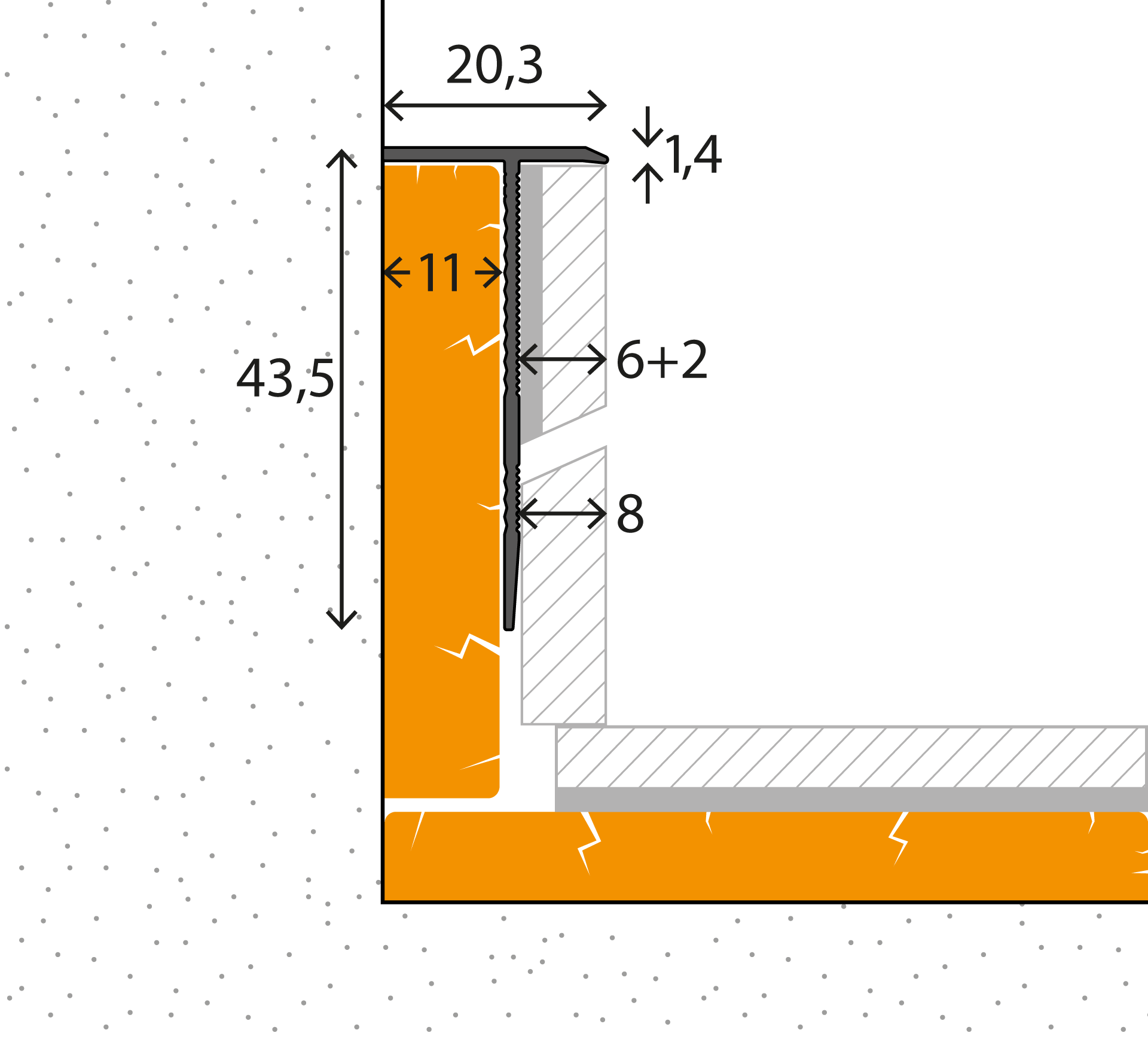 The Reno skirting board in silver is a covering strip for tile bases, which saves a lot of time when renovating. It can be used for a covering thickness of 2-3mm and for tile bases up to a depth of 11mm. Instead of laboriously knocking off the tile base during a renovation, you can make it disappear quickly and easily with the Reno skirting board. With a glued-in strip of your floor, you get the perfect connection between wall and floor.
