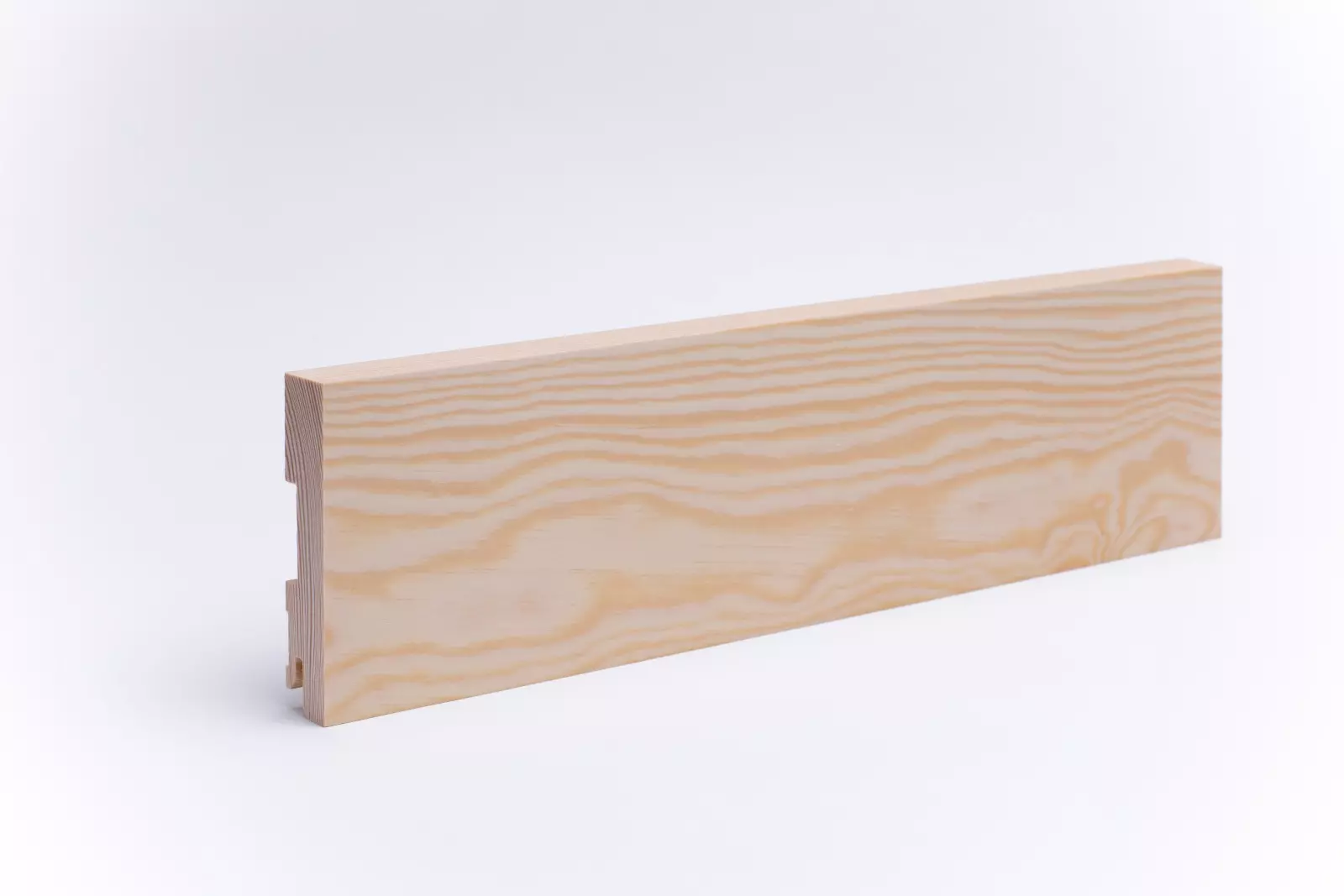 Skirting board made of genuine oiled pine wood with quadrangular in the dimensions 100mm x 20mm x 2400mm. The profiles are produced from one piece of wood from the trunk and give rise to a harmonious finish in wood and colour structure.