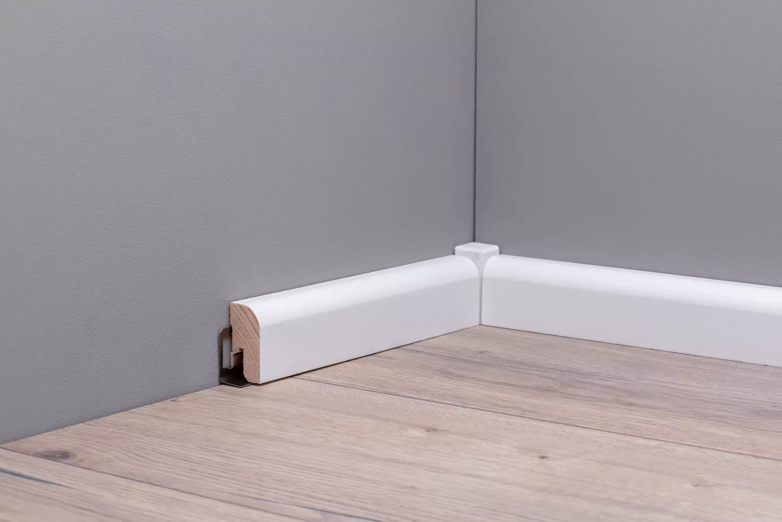 The practical clip system makes it quick and easy to mount the skirting boards on the wall.