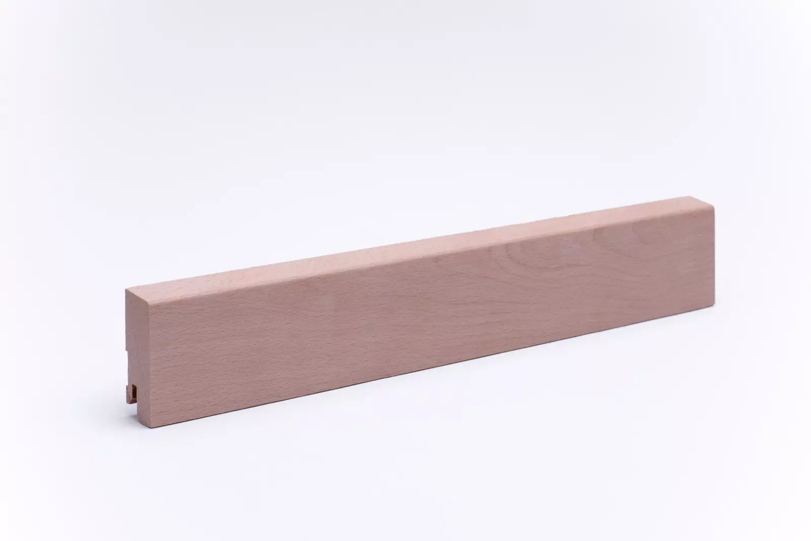 Skirting board made of genuine untreated beech wood with chamfered front edge in the dimensions 60mm x 20mm x 1.000 - 2.400 mm. The profiles are produced from one piece of wood from the trunk and give rise to a harmonious finish in wood and colour structure.