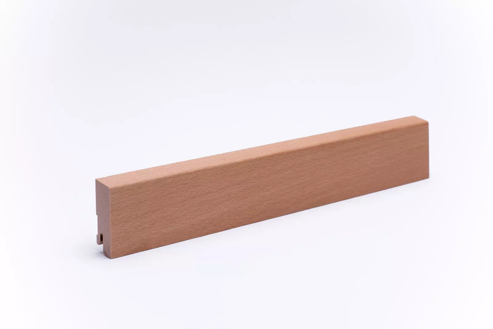 Skirting board made of genuine oiled beech wood with chamfered front edge in the dimensions 60mm x 20mm x 2400mm. The profiles are produced from one piece of wood from the trunk and give rise to a harmonious finish in wood and colour structure.