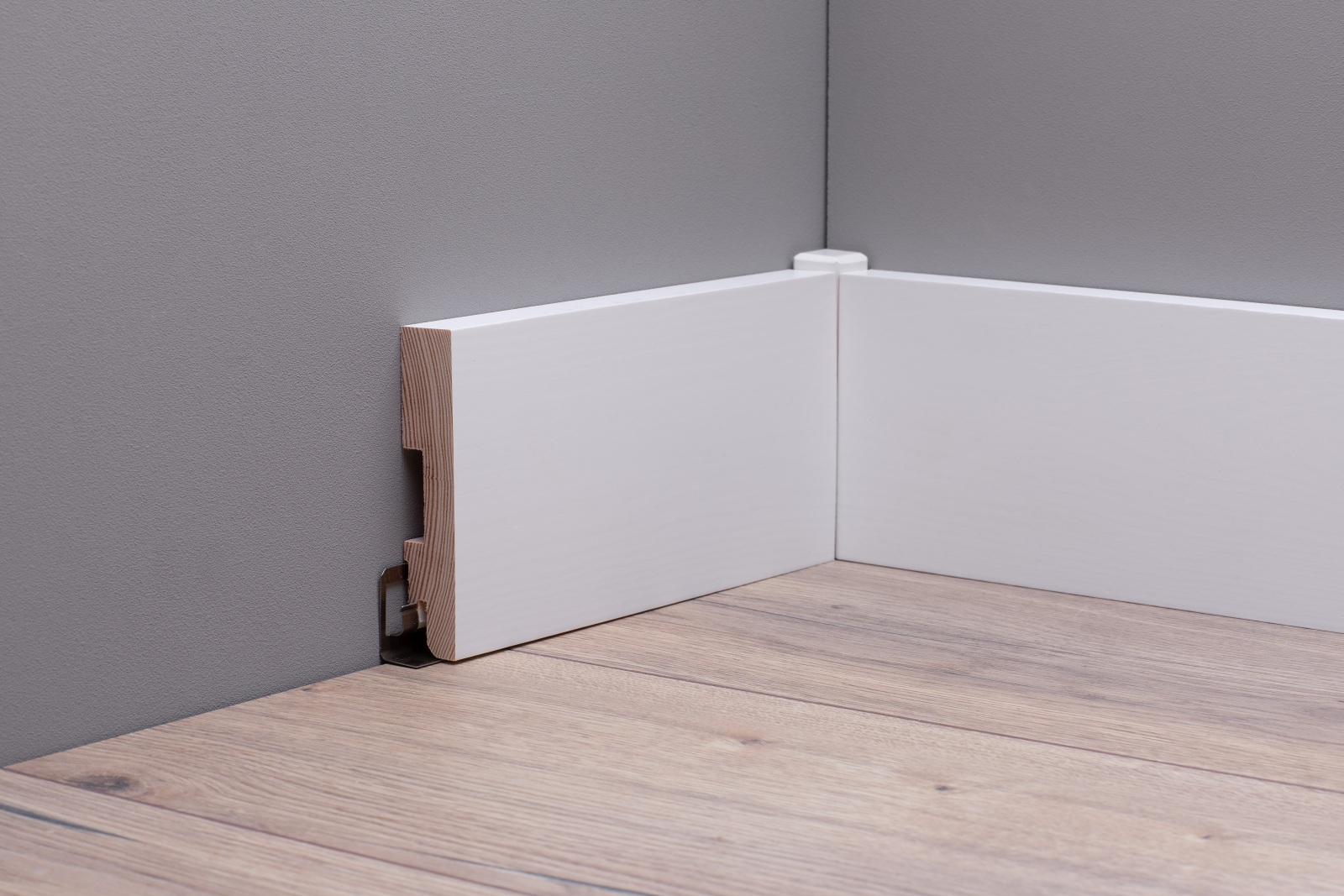 Durch das praktische ClipSystem lassen sich die Sockelleisten schnell und einfach an der Wand montieren.