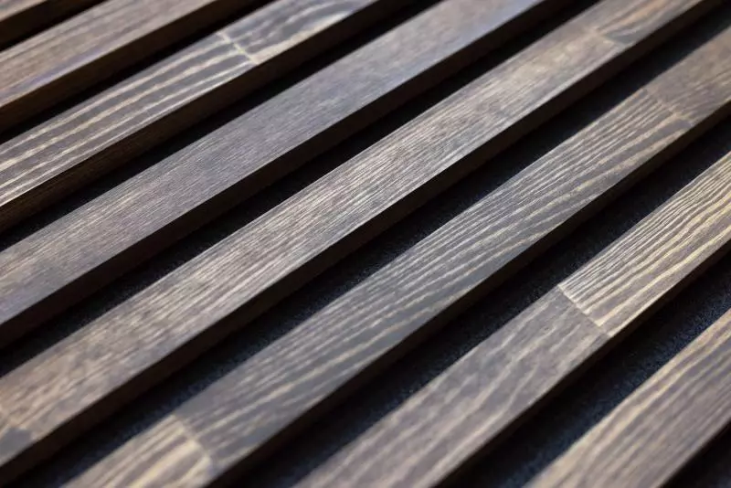 The surfaces of the slats are carefully treated with high-quality oils, available in different colors, to accentuate the natural beauty of the wood while providing an additional protective layer.
