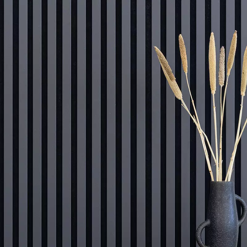 Slatwall is the counterpart to our prefabricated acoustic panels, which you can integrate directly into your living room or kitchen as a complete unit. Wall lamellae are the individual slats that are normally mounted on wall panels or individually to form a lamella wall. Used individually, they have a significant advantage: they arecompletely free in the visual design of the room and not bound to a specific dimension. This allows you to perfectly match your slat moldings in the living room to the existing furniture and colors, while highlighting the character of the furnishings.